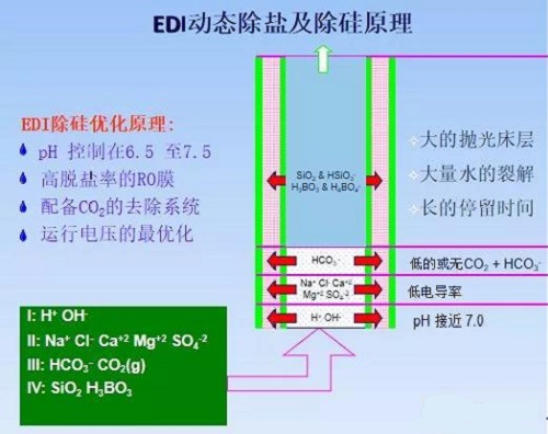 2. 二級(jí)RO系統(tǒng)中,可以在二級(jí)RO系統(tǒng)進(jìn)水前注入氫氧化鈉,調(diào)節(jié)二級(jí)RO進(jìn)水pH值, 以此方法來提高二級(jí)RO對(duì)于CO2經(jīng)的脫除率和RO的脫鹽率,經(jīng)過兩級(jí)RO后使得EDI的最佳FCE為:1~5μS/cm,通常用于火力發(fā)電或供熱機(jī)組,電子、半導(dǎo)體等領(lǐng)域工業(yè)除鹽水、超純水(高純度和低硅水平的水質(zhì)對(duì)高參數(shù)發(fā)電機(jī)組、半導(dǎo)體芯片質(zhì)量是至關(guān)重要的)。