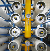反滲透適宜于截留溶解性鹽及分子量大于100daltons的有機物,僅允許水分子透過,醋酸纖維素反滲透脫模鹽率大于95%,反滲透復合膜脫鹽率大于98%,廣泛用于海水及苦鹽水淡化,鍋爐給水,工業純水及電子級超純水制備,廢水處理及特種分離等。
