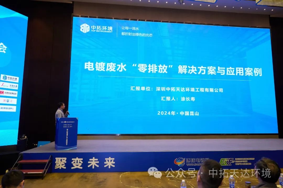 中拓環境受邀參加了本次峰會,并在大會期間由公司總經理助理涂長壽做了主題為《電鍍廢水“零排放”解決方案與應用案例》的報告。涂長壽向與會嘉賓詳細介紹了電鍍廢水“零排放”處理現狀、處理難點、解決方案,并向大家匯報了中拓環境近年來在電鍍廢水“零排放”領域的應用案例。